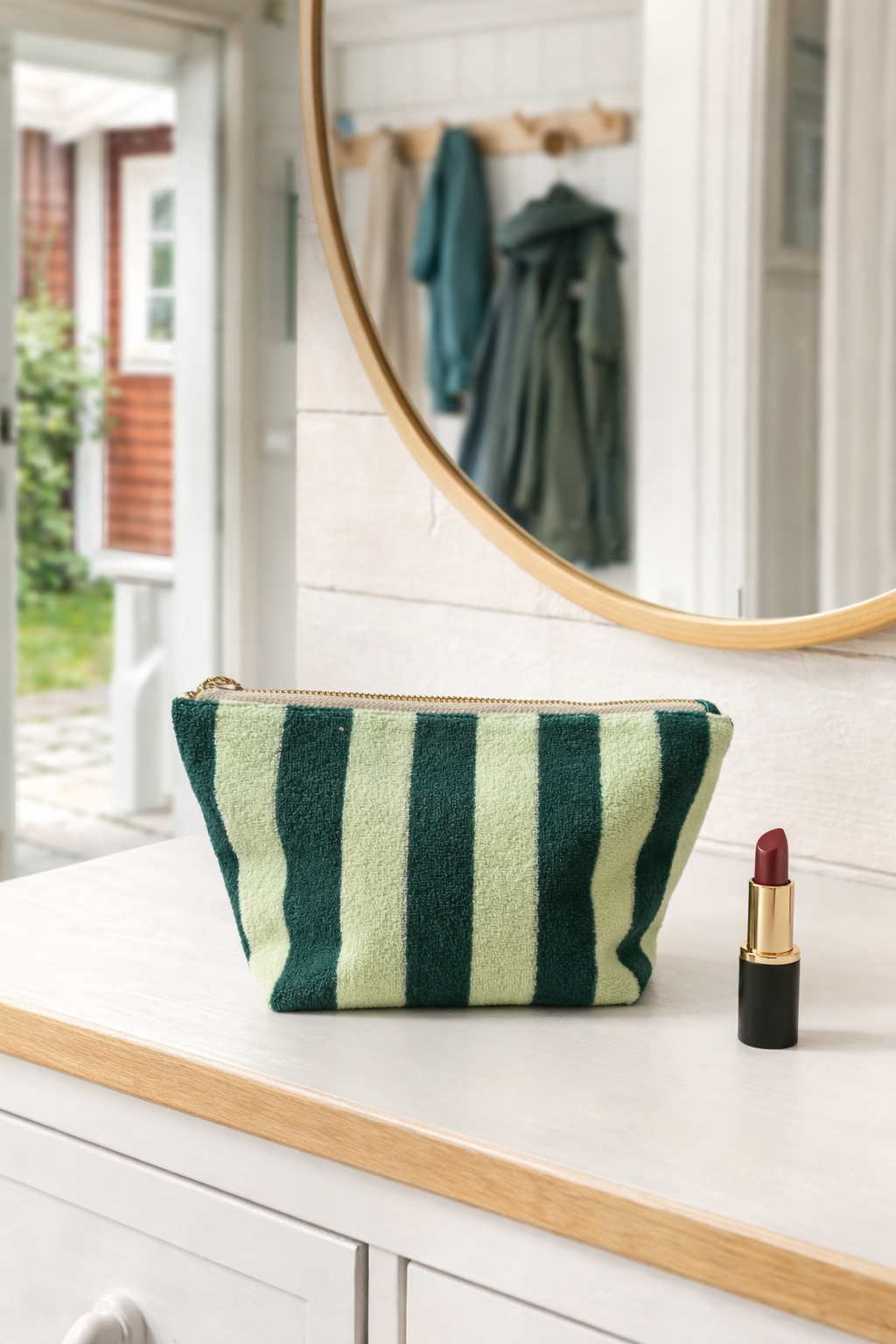 Gestreifte Schminktasche aus Frottee mit wasserabweisendem Innenfutter – Grün